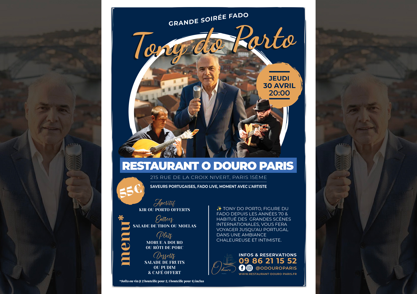 Le Restaurant O Douro Paris vous donne rendez-vous le jeudi 30 avril 2026 à 20h, pour une nouvelle soirée fado, fidèle à la tradition des derniers jeudis du mois.